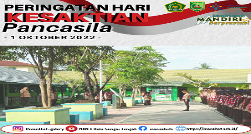 Keluarga Besar MAN 1 Hulu Sungai Tengah Mengucapkan selamat Hari Kesaktian Pancasila.