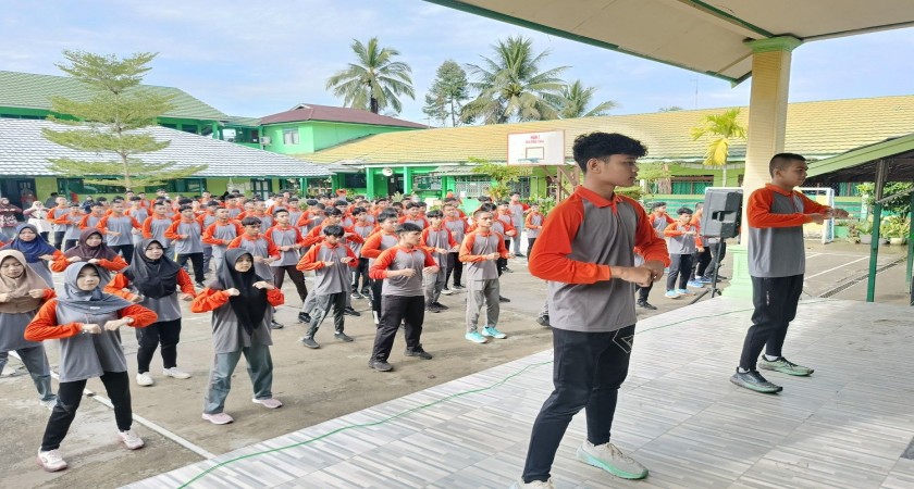 Dengan mengenakan pakaian olahraga, seluruh peserta tampak antusias mengikuti gerakan senam yang dipandu oleh instruktur yaitu dari peserta didik. Alunan musik yang enerjik semakin membangkitkan semangat para peserta untuk bergerak aktif.