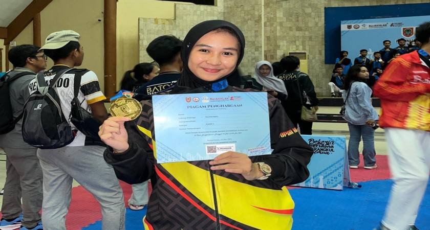 Ajang bergengsi yang digelar di Banjarmasin tersebut diikuti oleh ratusan atlet pelajar dari seluruh kabupaten dan kota se-Kalimantan Selatan. Nur Azkiya Azzahra yang turun di kategori Poomsae Individual Putri tampil gemilang dan berhasil mengungguli lawan-lawannya hingga mengantarkannya meraih medali emas.