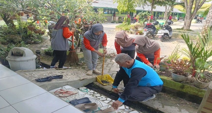 Aksi bersih ini diikuti oleh seluruh elemen madrasah, mulai dari guru, tenaga kependidikan, hingga peserta didik. Dengan penuh semangat, mereka bergotong royong membersihkan area halaman, taman, selokan, serta menata pot tanaman agar lingkungan madrasah tampak lebih rapi dan asri.
