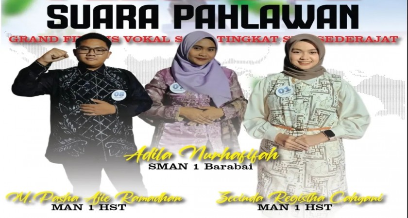Dari tiga grand finalis yang tampil, dua di antaranya berasal dari MAN 1 HST, yaitu Muhammad Pasha Ajie Ramadhan dan Zecinda Registha Cahyani. Satu finalis lainnya berasal dari SMAN 1 Barabai, yaitu Adila Norhafifah. Ketiganya menampilkan vokal terbaik mereka sesuai dengan tema yang membangkitkan semangat kepahlawanan.